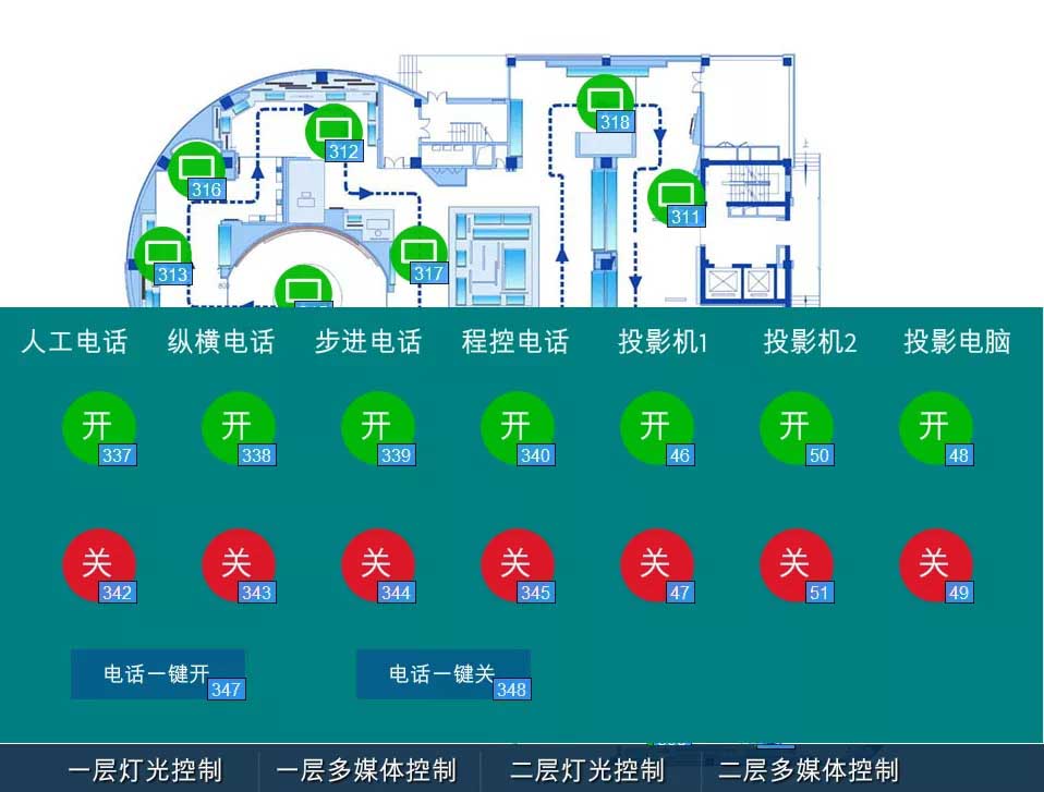 我司为满足客户整体需求及实操体验,经技术部门整体测试并对整体设备进行逐一评估后,决定将控制终端软件分成安卓Android和微软Windows两种系统版本,使其可兼容于支持这两大系统的平板和电脑中,控制终端软件可对电源开关、电脑开关机、电视机开关机,投影机开关机、一体机开关机、筒灯、灯带、展示柜开关、音频处理器灯一切开关接口的串口(如232//485串口)、TCP/IP协议等设备进行控制,执行相关指令。
